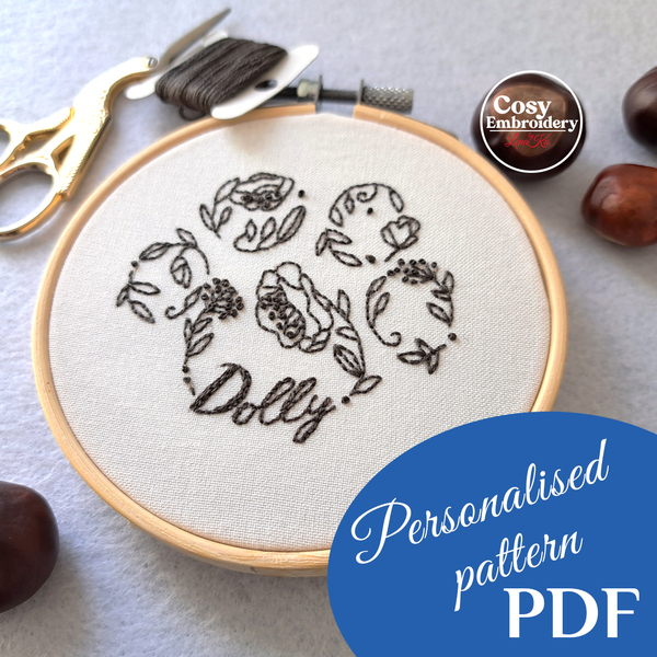 Personalized Pet Paw Embroidery Pattern Custom Dog Cat Name Design Step-by-Step Beginner Friendly PDF Tutorial DIY Unique Hoop Art